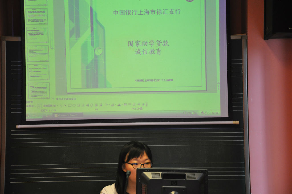 我院国家助学贷款经办银行——中国银行徐汇支行相关负责人为贷款的毕业生们介绍了个人征信知识,违约所需承担的责任,并一起观看了警示短片,同时为毕业生们详细讲解了还款协议和展期协议的填写内容和方式,并就学生的提问一一做了回复。
