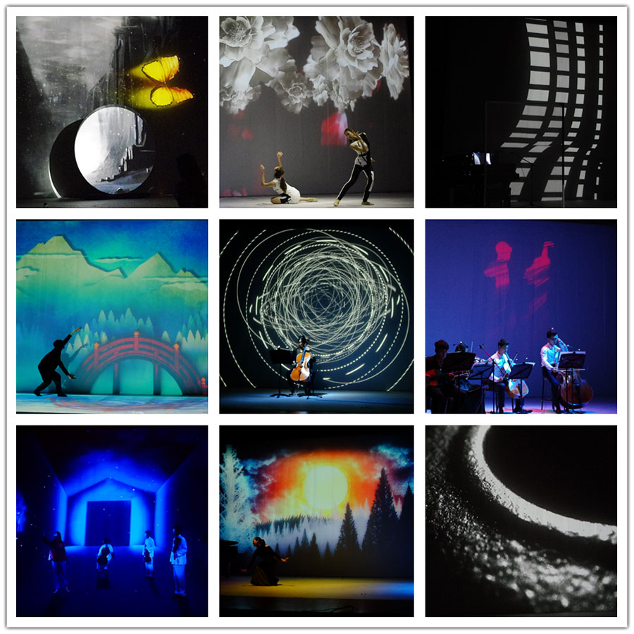 音乐剧场是在剧场艺术和数字化空间探索过程中形成的一种新的舞台艺术表现形式,已经成为数字媒体艺术学院(筹)的传承性的艺术品牌。在本次毕业作品展演中,有13个节目出现在6月7日晚19:15于贺绿汀音乐厅举行的多媒体音乐剧场中,以音乐与传媒和数字媒体艺术两个方向的学生为主来完成。无论是虚拟室内乐演奏、现场演奏乐器与多声道电子音乐,还是钢琴演奏与影像交互,甚至是从莎士比亚诗作和《诗经》处所得灵感而进行的作品创作,无一不在尝试着通过音响布局创造多维度空间,通过视觉表达延伸舞台空间,通过虚实结合增强音乐的艺术感官体验。不难看出,艺术的无界创作正在慢慢地生根发芽。