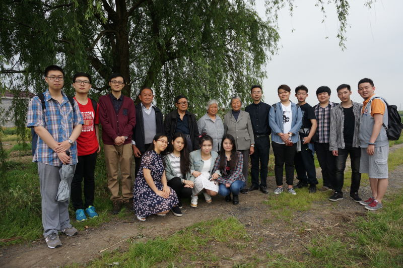 练塘镇地处上海西南,先后被评为“中国历史文化名镇”“国家生态镇”。师生一行在当地文化馆杨老师的引领下来到了田歌传承人张永联老先生的家里。由张老先生召集他的老搭档们,于开阔翠绿的田野间、清风飘逸的柳条下,四位民间艺术家为同学们展示了在长期劳动中产生的、民间歌手自行创编、以口传心记方式进行传唱、未经文人雕琢的田歌。同学们边听边记,录制了珍贵的音响资料。
