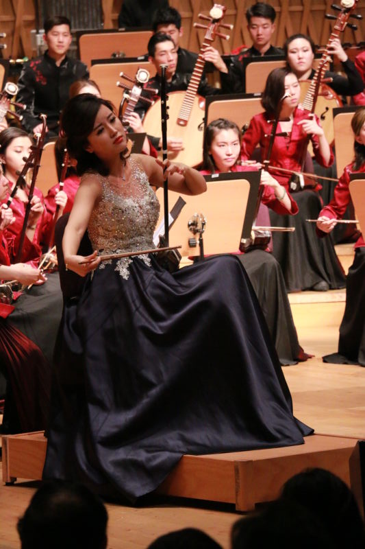 《幻想叙事曲》是在民乐协奏曲领域成绩卓著的著名作曲家王建民在上个世纪末创作的经典作品,音腔化旋律大气舒展,淳厚而略带悲美的韵味令人心动、感怀,此次展演极大地扩展了之前人们常见钢琴伴奏版本的音色音响空间。作品一开始就以散板的二胡旋律直接点题“幻想曲”体裁的手法,之后进入的不同性格主题以中国古代的清乐、雅乐、燕乐等音阶及山西民歌、戏曲音乐中的特有旋法及音调而进行逐层推展,展现了叙事曲的结构发展手法特点。作品以线性思维统筹并一气呵成,情绪畅达,展现了叙事曲在情境转换上的不同音响特点,其器乐化的探索挖掘了二胡这件拉弦乐器在声腔化基础上的更多音型化空间,给人以有控制的无限延展的音乐渐变之美,这既是中国传统音乐的惯常艺术魅力,也是现代音乐着意追求的情境。