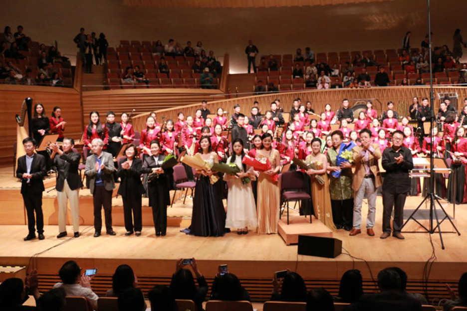 旅美上音校友王征、王乐琦夫妇以寺庙中的风物为内容而创作的《东方寺庙》,主题音乐运用传统手法,它更注重古琴本原音色及旋律的运用,由此呈现出恬淡、素雅、闲适、抒情韵致的第一主题,第二主题的欢悦情绪对比,将乐曲在中间段落进行了变化,突出了古琴在与乐队协奏中的特有张力,而变化再现的主题更显得音调的沁雅,音乐在松弛之中结束全曲。