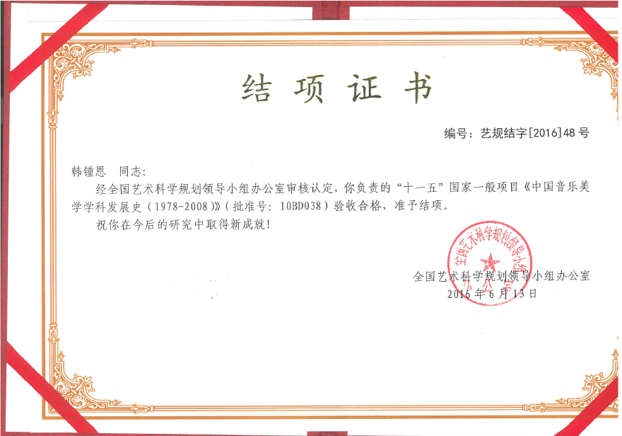 经专家评审,全国艺术科学规划领导小组办公室审核认定,近日,我院贾达群教授、韩锺恩教授与钱仁平教授分别承担、负责的三项国家社科基金艺术学项目顺利结项。近年来,我院在重点、重大科研项目申报方面成绩显著,与此同时,学校高度重视、强化管理、配套支持、务实推进各科研项目的开展与结题。