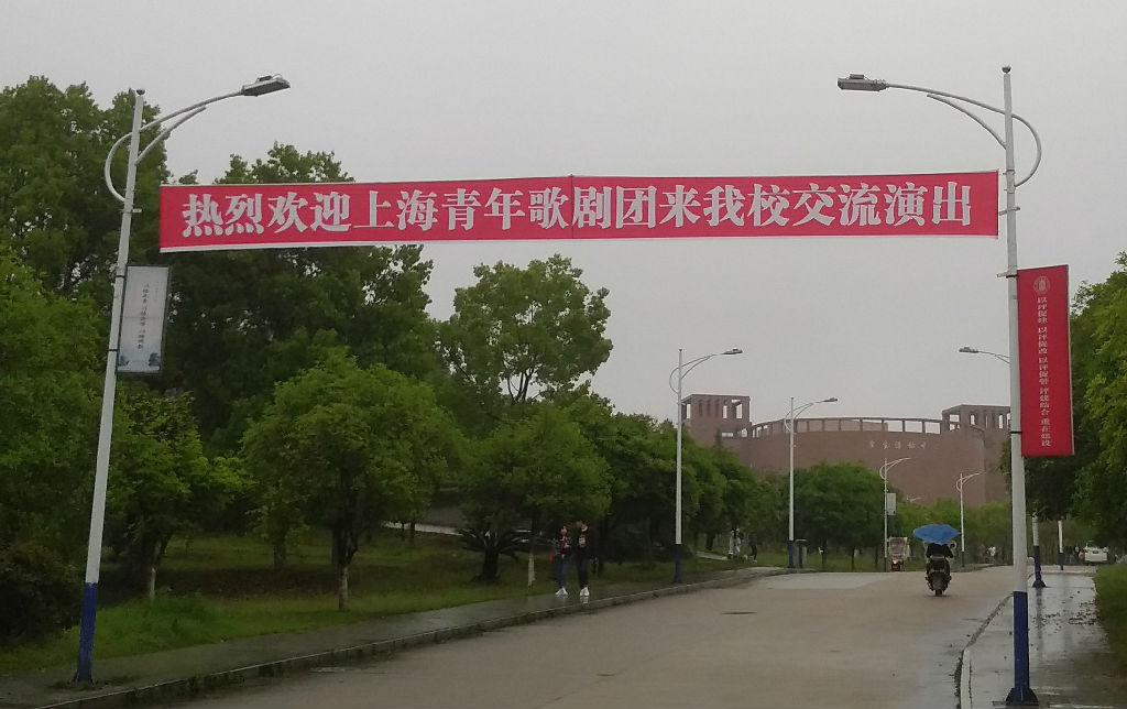演出当晚,学生活动中心的650个座位座无虚席,陶大校方还在过道上加摆了“四纵两横”共100个加座,有的晚到的观众只能站着观赏。青歌团的15位师生则向陶大的观众呈现了一台赏心悦目的音乐会。曲目以《一江春水向东流》、《汤显祖》、《日出》和《贺绿汀》这四部我院自2014年以来创排的中国歌剧中的经典片段为主,加上《如梦令》、《故乡》、《幽兰操》和《美丽的康定 溜溜的城》四首中国艺术歌曲和民歌,并最终在合唱《上音,我的爱》的嘹亮歌声中落下帷幕。而在全校师生热烈的掌声和欢呼声中,廖老师还登台即兴清唱《父亲的草原,母亲的河》,更是让现场观众响起了雷鸣般的掌声,一曲终了,点燃了整座剧场的气氛。
