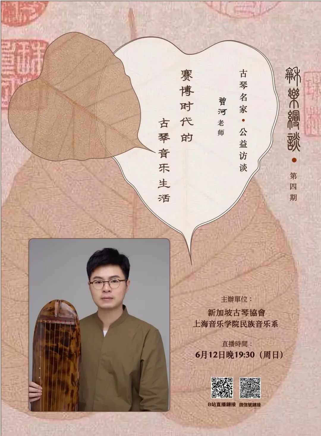 由上海音乐学院民族音乐系和新加坡古琴协会主办的“龢乐缦谈——古琴名家公益访谈”系列节目第四期。本期我们的嘉宾是蜀派古琴叶氏传人曾河老师。