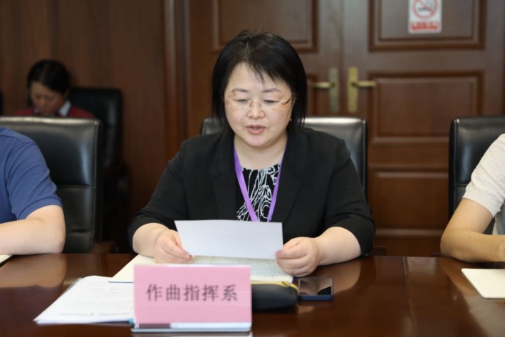 第八轮被巡察二级党组织作曲指挥系党总支书记邱惠柳、马克思主义学院与公共基础部联合党支部书记汤隽杰、直属单位党总支书记张一及第九轮被巡察二级党组织声歌系党总支副书记(主持工作) 朱晶晶、现打系党支部副书记(主持工作)颜睿超、离退休党组织代表易慧分别作了表态发言。