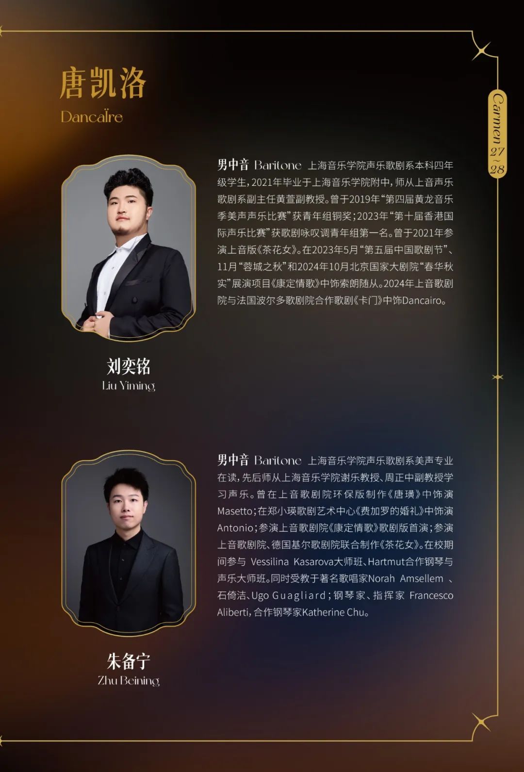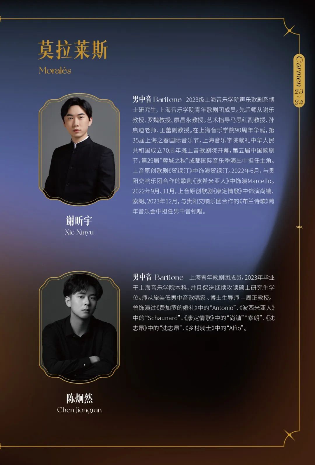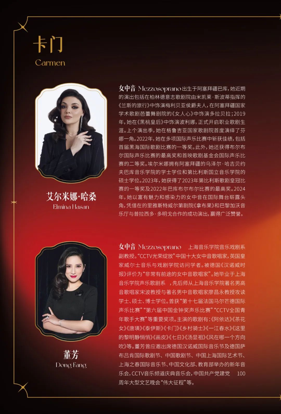 此外,上音歌剧舞台也成为青年人才的成长加速器。此次饰演唐何塞的张龙,是上海音乐学院优秀毕业生、德国新声音国际声乐大赛冠军。他表示:“很开心也很荣幸参演上音歌剧院为了纪念中法建交60周年而共同制作的歌剧《卡门》,相信我们‘上音版’的《卡门》能够给大家带来全新的歌剧体验。”青年歌唱家、上音音乐戏剧系副教授董芳此次也将饰演卡门,她表示非常开心:“卡门对于演员的歌唱,舞蹈和表演有着极高的要求,是所有女中音都梦寐以求的角色。”