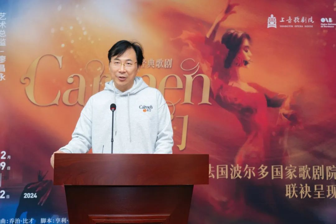 “《卡门》的制作有三大意义”,12月7日,中法主创团队和参与制作的上音相关部门、系部参加了该剧演出前的新闻发布会,该剧艺术总监、上海音乐学院院长廖昌永在接受媒体采访时表示,“它既凸显了上音一直以来的国际资源配置能力,为上音的青年歌剧人才提供了艺术实践平台,也是上音为2024年申城音乐艺术舞台的岁末献礼。”