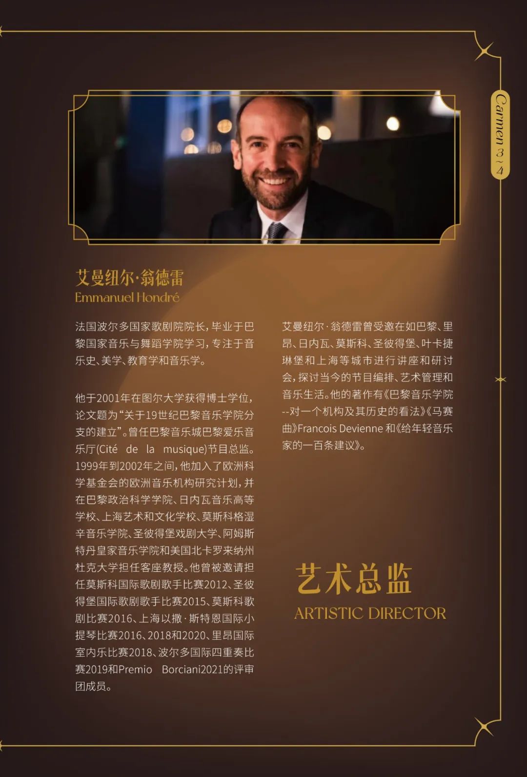 波尔多国家歌剧院是波尔多最古老的歌剧院和最重要的文化地标之一,不仅在法国艺术界具有重要地位,在国际上更是享有盛誉。“与上海音乐学院、上音歌剧院合作,是我的荣幸,今年是中法建交60周年,我们很高兴廖昌永院长邀请我们,与上音歌剧院的团队合作,共同制作新的《卡门》。”法国波尔多国家歌剧院院长艾曼纽尔·翁德雷说。