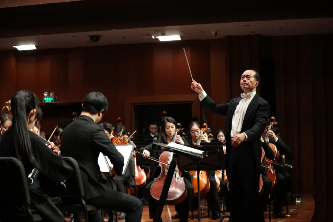 学校高度重视此次音乐会,由党委统战部、艺术处、管弦系通力协作,并派出了以刘照陆、张润崯、施宇成、沈子钰、耿文彬、巢晖、罗旭、马勇、刘铭、陈坤、顾聪、李德钦、朱玮、宋雨晨为首席的交响乐团强大阵容。音乐会以管弦乐《红旗颂》拉开帷幕,《红旗颂》是由“七一勋章”获得者、上音杰出校友、著名作曲家吕其明创作的交响乐作品。第一交响序曲《激情燃烧的岁月》原为歌剧《悲怆的黎明》的音乐,后被改编为交响序曲。它以激昂的旋律,颂扬了老一辈革命者的奉献精神,升华出向上的时代强音。管弦乐《五十六个民族,五十六朵花》广泛吸收了少数民族的音乐素材,通过气势恢宏、悠扬悦耳的旋律,表达了各族人民对祖国的深厚情感。音乐会在《拉德斯基进行曲》欢快的旋律中和全场观众热情的掌声中落下帷幕。
