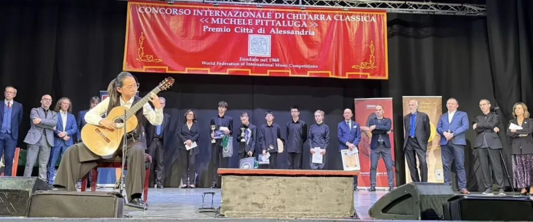 近日,第57届意大利皮塔卢加(Pittaluga)国际古典吉他比赛在意大利亚历山德里亚市圆满落幕。上海音乐学院古典吉他教学团队取得重大突破。经过三轮角逐,黄玟安获青年组第一名,张思恩获青年组第四名,戴民博获青年组优秀奖,指导教师为闵振奇副教授,刷新上音古典吉他专业在欧洲重大国际吉他赛事中的历史最好成绩。