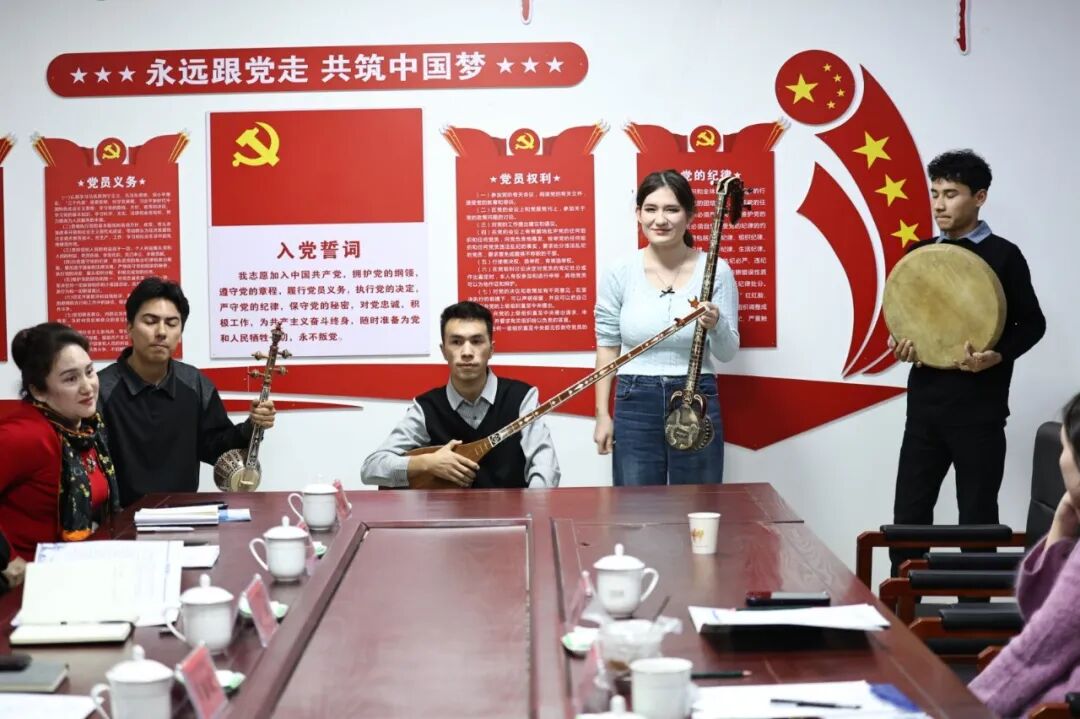 上音师生还应邀访问喀什大学音乐与舞蹈学院,开展学术交流。两校师生同台演绎民族音乐作品,围绕教学、实践与学科建设进行深入研讨,并参观了校史馆、思政馆与特色文化展览,增进了对彼此发展历程和地域文化的了解。交流中,喀什大学副校长罗浩波、音乐与舞蹈学院院长王英阁均表示,希望持续加强两校互动,进一步深化沪疆高校间的跨区域学术合作。