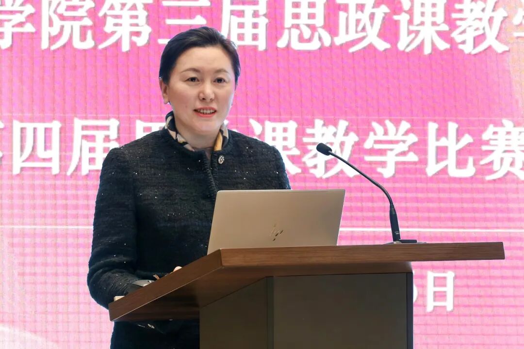 党委书记裴小倩在总结讲话中指出,上音举办思政课教学比赛的初衷是推动思政教育工作守正创新,提升思政课针对性实效性。她指出,第三届思政课教学比赛有四个突出特点:一是主题鲜明,突出习近平文化思想的引领;二是方法创新,聚焦案例教学增强课堂的吸引力;三是协同联动,展现高效的团队合作精神;四是融合提质,激发专业教师的积极参与热情。同时,她对第四届思政课教学比赛提出三点期望:一是“金”,即聚焦打磨打造成金课,持续深化理论武装,深入学习习近平文化思想、习近平总书记关于文艺工作重要论述;二是“活”,要把党的创新理论和学科专业深度融合,继续采用案例式教学并探索挖掘更多优秀案例;三是“效”,要在提升思政课效果上下功夫,寻找更多有感染力的载体,不断提升思政教育的实效性。