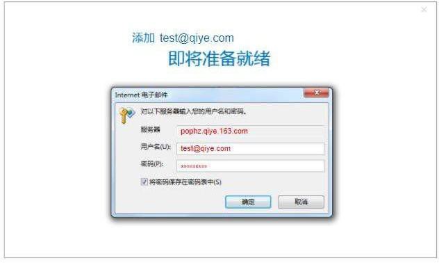 第六步:输入你的输入您的邮箱帐号密码信息,点击确定。