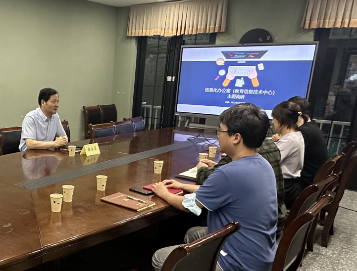 2023年5月25日下午,侯立玉副院长对信息办(教育信息技术中心)进行了主题调查研究。教育信息技术中心全体员工参加调研。