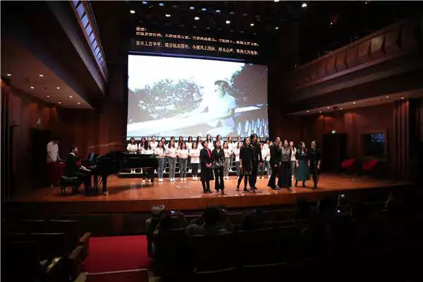 最后一个节目是本场音乐会的点睛之笔,由本院教师、音乐学系、研究生部的学生组成,演唱了一首特别版的《天净沙·秋思》,情感真挚而又温暖。这首歌曲再现了黄老师的原声、并由梁晴老师亲手改编了歌词,成为《天净沙·箴音》,歌词唱到: