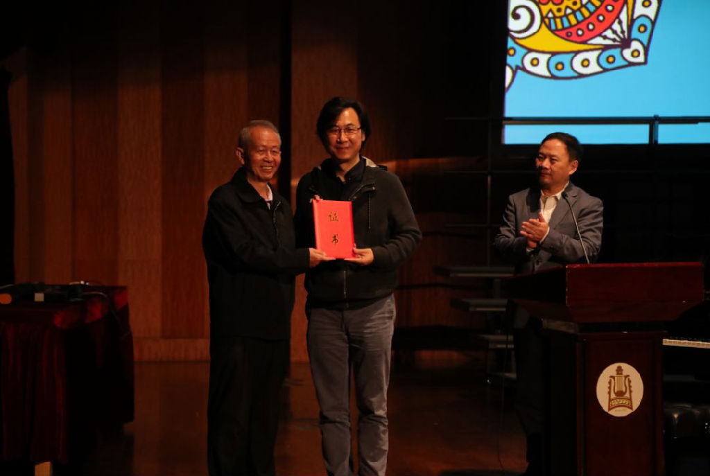 黄允箴老师的哥哥黄大昉先生非常感谢我院能够举办一场黄允箴老师的专题音乐会,并接受了我院院长廖昌永先生向他颁发的捐赠证书。廖院长阐述了本次音乐会举办的意义,并就音乐会的主题“歌传天地和”的内涵做进一步的阐述。他说: