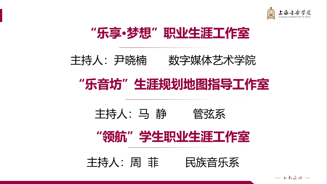 为贯彻落实教育部关于做好2025届高校毕业生就业创业工作的相关部署,全面推进上海音乐学院2025届毕业生就业创业工作,引导毕业生树立正确的就业观念,提高就业质量,上音2025届毕业生就业创业工作推进会于12月19日上午在学术厅举行。 院领导廖昌永、徐卫、王磊、冯磊,相关职能部门和二级院系负责人、全体辅导员、毕业班班主任参加会议。会议由徐卫主持。 廖昌永充分肯定了上音2024届毕业生就业创业工作取得的成绩,并就做好2025届毕业生就业创业工作提出了四点要求。 一是要提高政治站位,抓好统筹协调。深入贯彻落实党的二十届三中全会精神和全国教育大会精神,实施就业优先战略,把毕业生就业作为重中之重。 二是要破局就业结构矛盾,促进就业工作内涵式发展。完善招生-培养-就业工作衔接机制,科学研判人才发展趋势及供需状况,人才培养全过程实行动态调整。 三是要提前谋划精准施策,深入拓展就业市场资源。全校各部门要早谋划、早部署、早行动,精准有效开展访企拓岗,足质足量开拓就业岗位。 四是要树立正确就业择业观,多措并举拓宽就业创业渠道。支持广大毕业生扎根基层、征兵入伍,在文艺主战场和祖国需要的地方建功立业。 廖昌永强调,全院上下要形成工作合力,全面贯彻落实党中央和市委部署要求,以饱满的热情和坚定的决心,全力推进我校2025届毕业生高质量充分就业。 王磊为获得“上海市促进就业先进工作者”“2024年上海高校毕业生就业工作优秀典型”颁发荣誉证书。 冯磊为上海音乐学院学生职业(生涯)发展教育工作室授牌。 党委学生(研究生)工作部部长、学生处处长欧阳佳沁传达了教育部、人力资源和社会保障部召开的2025届毕业生就业创业工作会议精神,总结了上音2024届毕业生就业创业工作情况,并对推进2025届毕业生就业创业工作做出具体安排。 教务处处长杨茹文、研究生部主任钱仁平、音乐工程系系主任于阳、钢琴系党支部副书记(主持工作)于清、“乐享·梦想”职业生涯工作室主持人、数字媒体艺术学院党总支副书记尹晓楠,作交流发言。 杨茹文围绕教务处推进落实学校“招生-培养-就业”联动机制提出了具体做法。钱仁平表示研究生部将根据就业情况动态调整研究生招生计划和培养方案,推动就业工作导师责任制。音乐工程系作为校企合作模式的深度参与者,于阳结合学科专业特点分享了音工系开展小而精、专而优的专场招聘活动、与知名企业建立实习实训基地等经验做法及成效。于清从“就业调研”与“社会实践”相结合的角度介绍了钢琴系近年来让学生了解和认识行业方面所做的尝试,引发学生思考、探讨、分析中国钢琴艺术的未来发展路。“乐享·梦想”职业生涯工作室秉持让每位学生在逐梦的路上创新求臻,乐享人生为宗旨,尹晓楠从“思政引领、先锋示范、实践驱动、科艺融合”多维度详细介绍了工作室的开展情况。